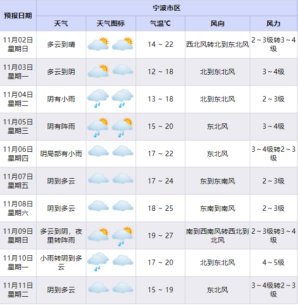 新的一周(11月3日到9日),我市气温“先抑后扬”。宁波气象供图