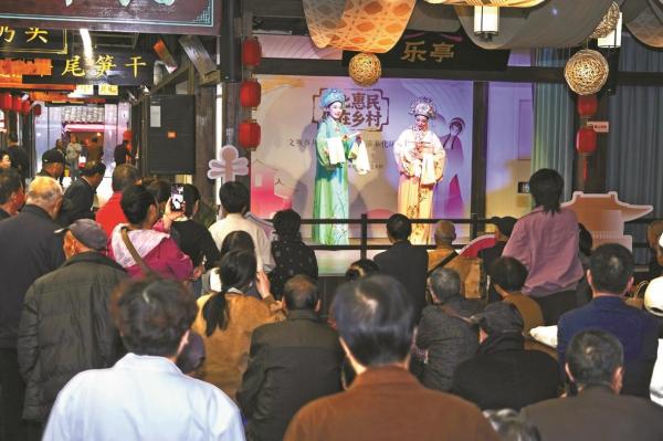 深受村民喜欢的经典戏曲也接连登场——越剧《梁山伯与祝英台》的经典桥段《十八相送》一登台,就吸引了众多居民前来。