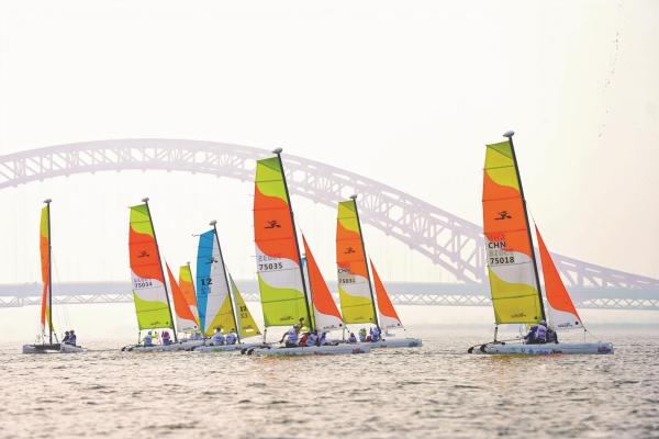 另外一支来自杭州的参赛队“拖标王者”队中,有的队员是第六次来到这里参赛。他们介绍称,用这个队名,是因为之前的赛事中,他们曾把其他船队的队标拖走了。他们认为,帆船运动和别的运动项目相比是一种全新的体验,除了感受江河湖海魅力,也会遇到新的挑战,比如要根据风向、水流等及时作出判断和调整,所以考验的不仅是体能,还有综合知识。