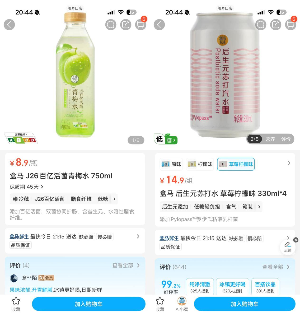 盒马App商品页面截图