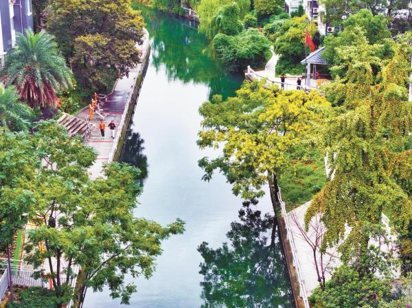 自去年10月以来,鄞州区直落河通过再生水涵养工程的系统构建,水清岸绿的景观持续拓展。如今,直落河已成为市民休闲健身的生态“健身房”。(宁波日报 甬派客户端 唐严 戎美容 摄)