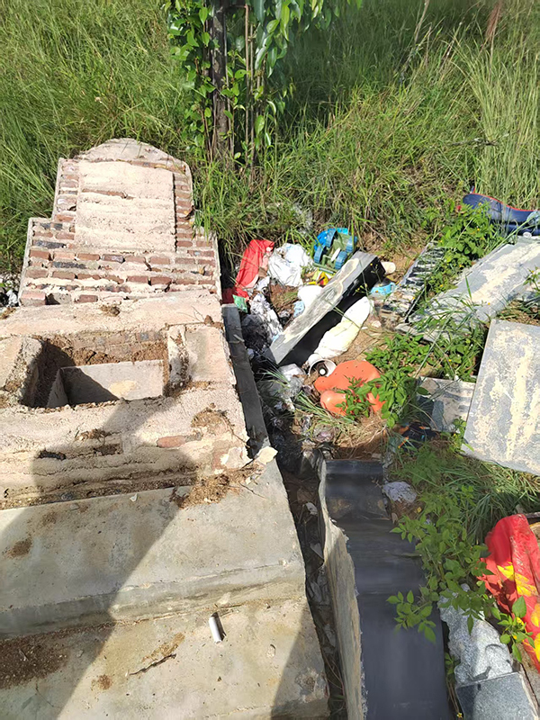 小梦坟墓被损毁,骨灰被丢弃在一旁。