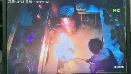 此外,葛师傅在灭火初期的紧急处理也有误。“餐饮场所油锅用油量多,起火后升温快、火势猛,用锅盖、蔬菜覆盖灭火已不适用。”消防员提醒,这个警情中,锅里的油只差小半个手掌就满了,此时再用锅盖和湿抹布灭火,效果不明显,“正确步骤是先关闭气源,后用专业灭火毯由近及远完整覆盖锅体,确保无空隙,才能实现窒息灭火。”
