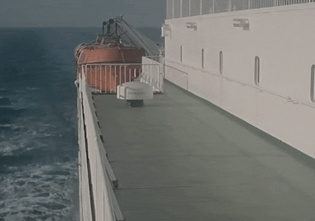案发现场位于船舶七层甲板救助艇存放区,要进入该区域,不仅有栏杆阻挡,现场还明确悬挂着“宾客止步”的警示牌,而临海一侧没有防护栏,这对夫妻为何要冒险进入如此危险的区域?