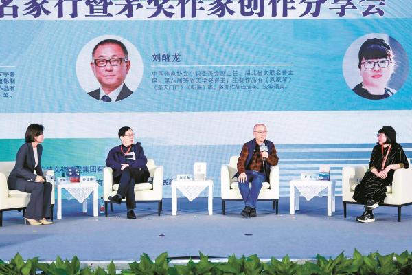 刘醒龙(中)在第十届浙江书展上分享创作经验。(组委会供图)