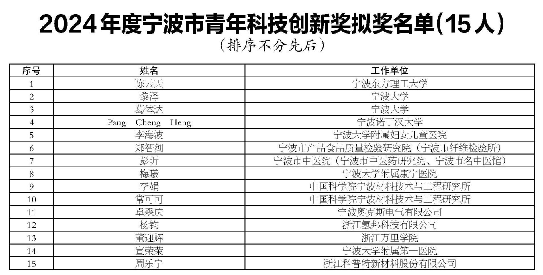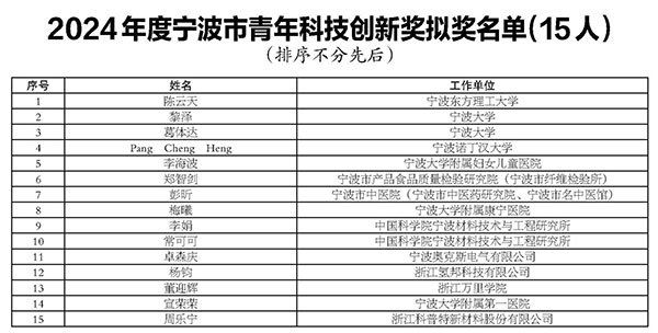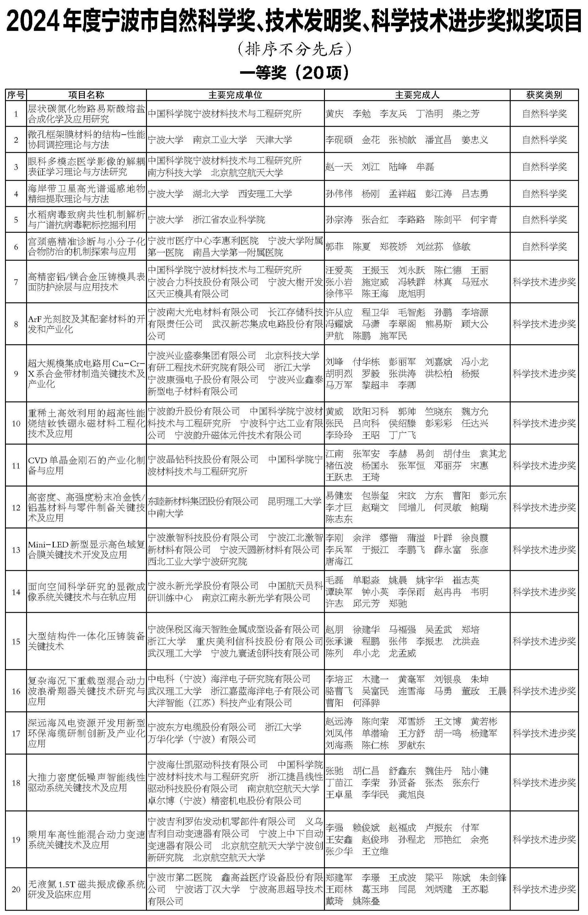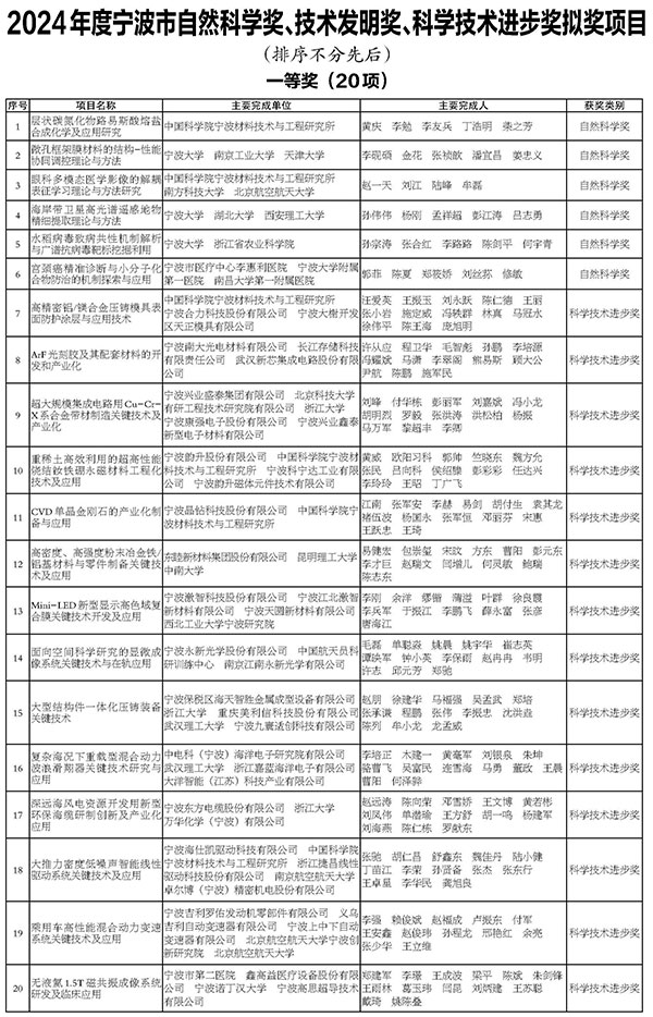根据《宁波市科学技术奖励办法》(甬政发〔2025〕40号)和《宁波市科学技术奖励办法实施细则》(甬科资〔2025〕94号)规定,现将2024年度宁波市科学技术奖拟奖项目和人员予以公示。公示时间7天,自2025年11月5日至11月11日。