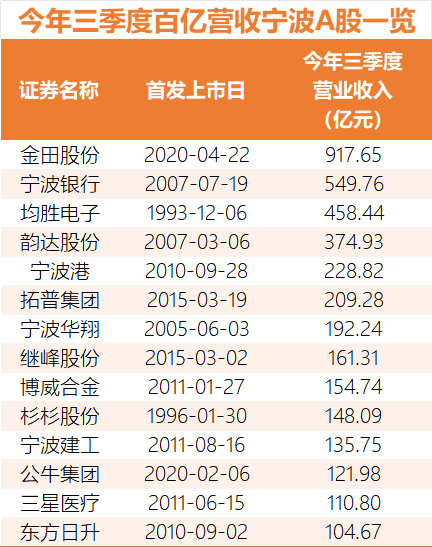 今年前三季度,“宁波军团”合计营收达6013.79亿元,归母净利润526.52亿元;百亿营收上市甬企从10年前的4家(宁波银行、宁波港、雅戈尔、龙元建设)增至14家;归母净利润超10亿元的从3家(宁波银行、宁波港、雅戈尔)增至8家。