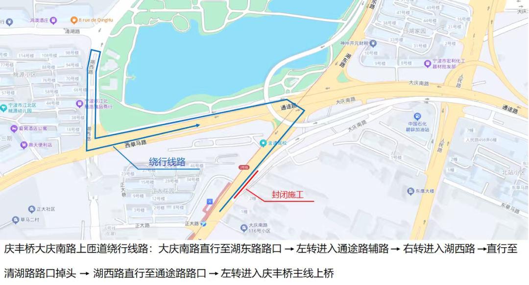 宁波交警发布信息,因施工需要,庆丰桥相关路段交通组织将进行调整。