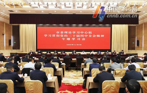 11月6日上午,市委理论学习中心组举行学习贯彻党的二十届四中全会精神专题学习会。市委副书记、市长汤飞帆主持会议并讲话,强调要深入学习领悟党的二十届四中全会精神,聚焦贯彻“4+1”重要要求和“132”总体工作部署,深入研究谋划宁波“十五五”经济社会发展的思路举措,凝心聚力开创中国式现代化市域实践新局面。