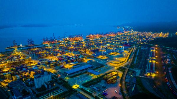 图为夜幕下的宁波舟山港。蒋晓东 摄