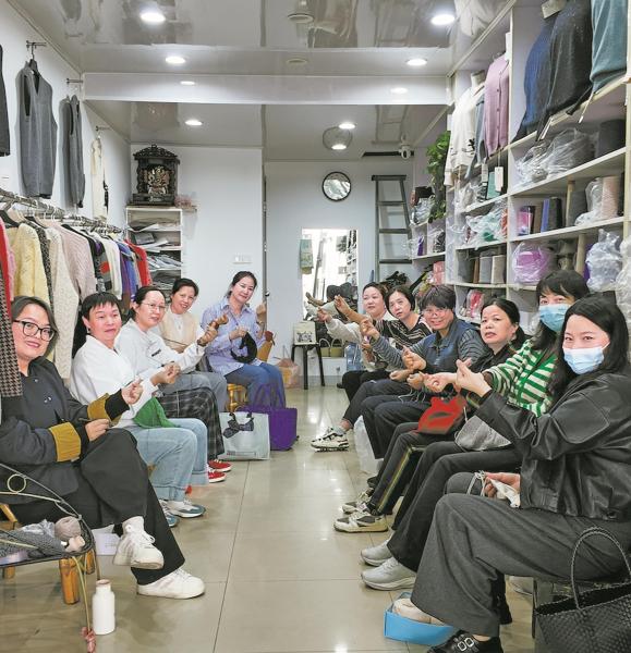 昨日午后,镇海招宝山老城三角地一家毛线店里,织针穿梭的“沙沙”声裹着细碎家常。