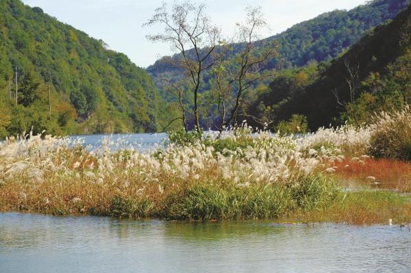 当年,11月中旬,大片洁白的荻花迎风起伏,映衬着碧蓝的水面以及附近的秋叶斑斓的树林,分外美丽。运气好的话,甚至还能见到前来越冬的野生鸳鸯,它们优哉游哉地游过荻花的倒影,真是天然的生态美景。