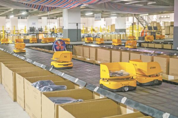 25个自动分拣机器人有序穿行,126辆穿梭车在13米高的蜂巢状“多穿立体库”里灵活穿梭,7台提升机精准上下传送,5万多个服装品类在此快速匹配订单,平均1秒就有1个电商邮件发出……昨天,位于海曙区石碶街道的中国邮政雅戈尔智能仓一片繁忙景象,各类自动化智能设备快速运转,一个个快递包裹在此发往全国各地。据了解,自10月9日开启以来,该仓已发出超31万单快件。(宁波日报 甬派客户端 沈天舟 胡佳亲 忻之承 文/摄)