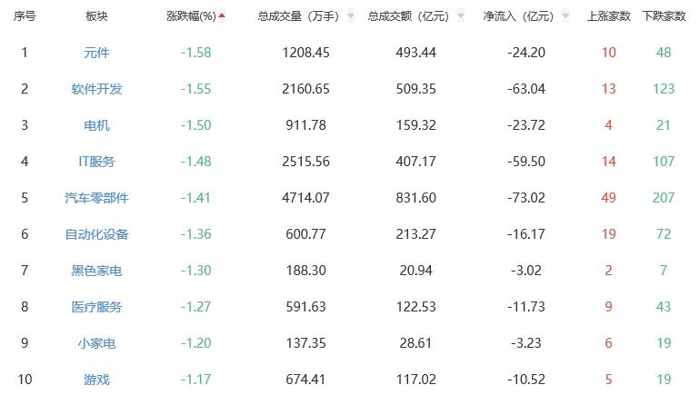 板块方面,能源金属、化学原料、电池、农化制品等涨幅居前,元件、软件开发、电机、IT服务等跌幅居前。