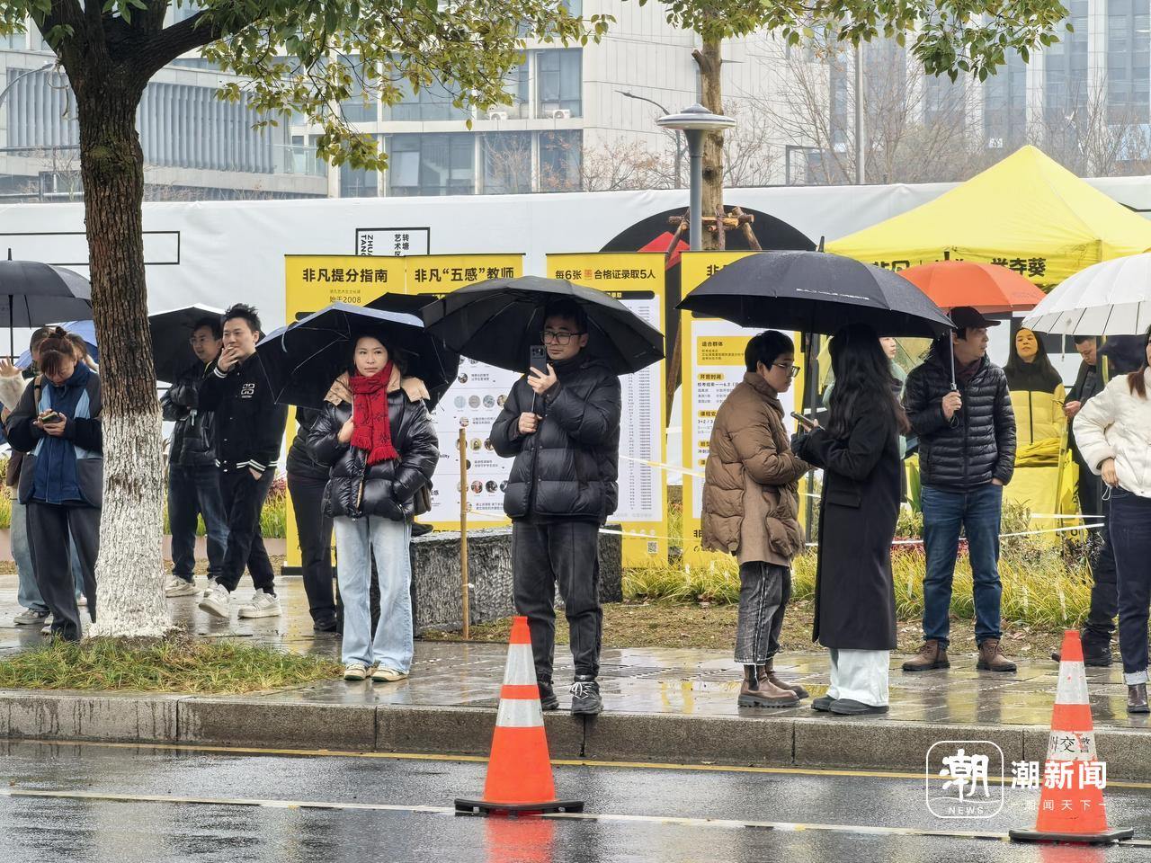 2024年底,中国美术学院外,等待孩子参加省统考的家长们。 记者邱伊娜摄