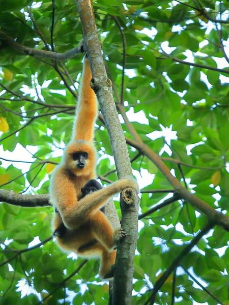 △帝国君子长臂猿与今天的海南长臂猿是近亲,图为海南长臂猿。