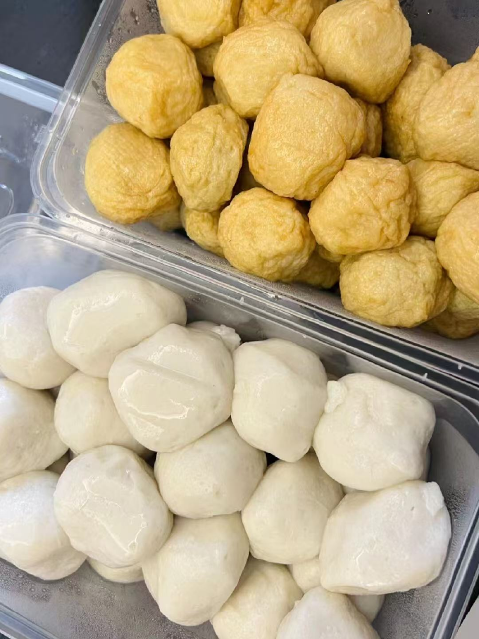 黄色鱼丸油炸定型,冷冻能放较长时间。