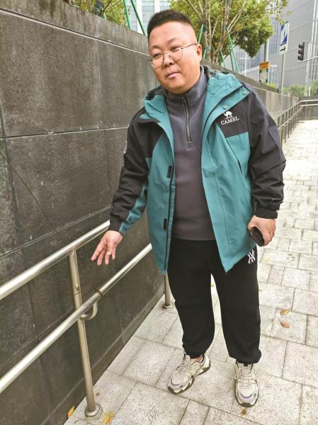 路过一段无障碍通道,小杨迅速发现问题。(石景 摄)