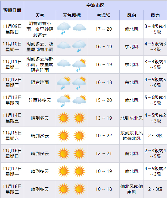 受冷空气影响,11月9日,我市延续阴雨绵绵的“画风”,秋凉感也变得愈加明显;此外,一直到11月13日,我市沿海海面有8-10级偏北大风。
