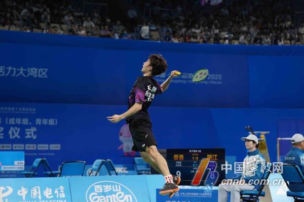 11月9日,第十五届全国运动会(十五运)羽毛球项目继续团体赛较量,宁波运动员王昶、陈旭君助阵浙江男队3:1击败香港男队。
