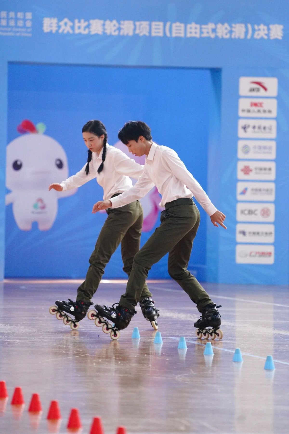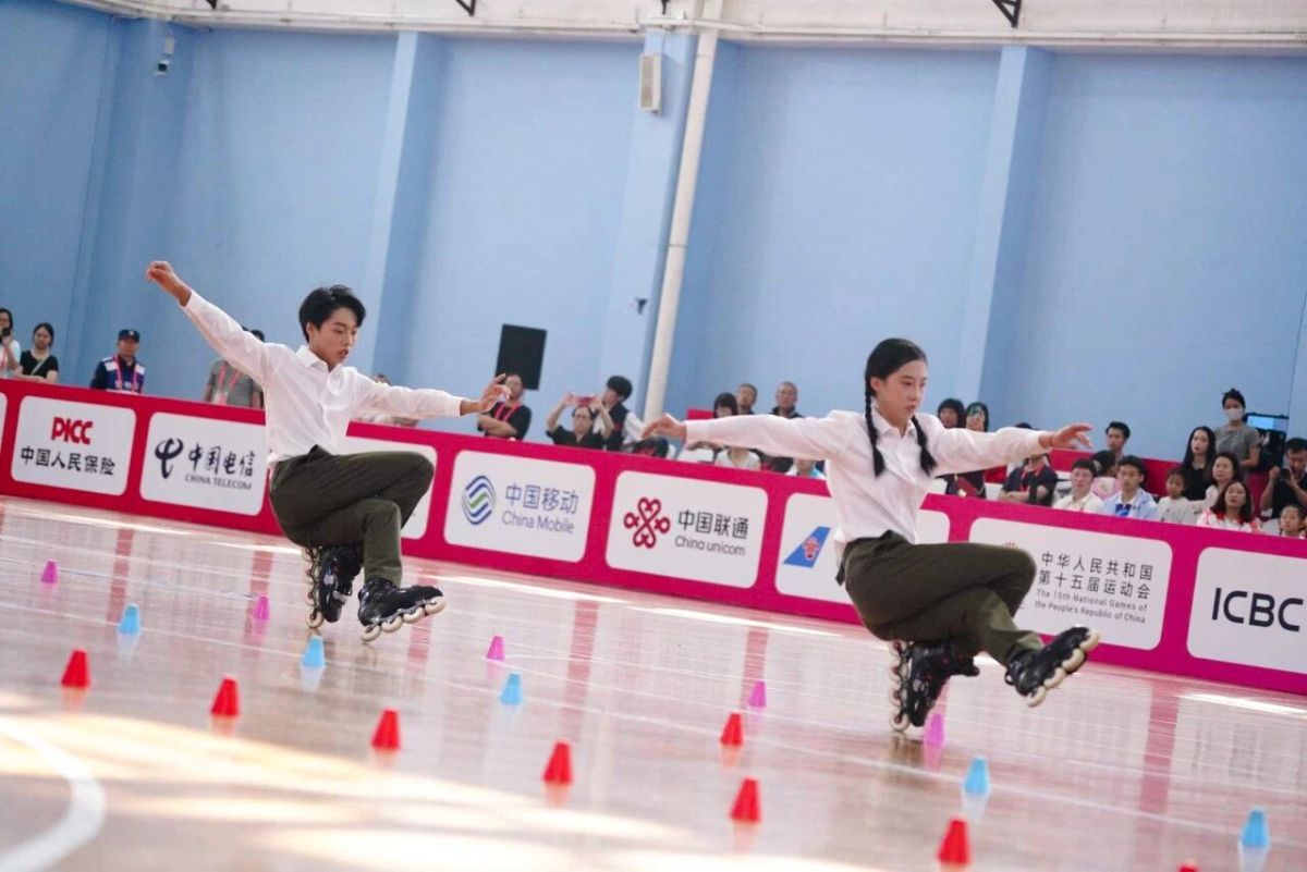 蔡旭磊和洪语瞳在全运会群众比赛轮滑项目决赛中。图片源自组委会