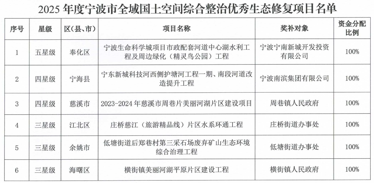今天下午,市自然资源和规划局、市财政局联合公布2025年度全域国土空间综合整治优秀生态修复项目评选结果,6个项目获得总额2200万元的财政资金奖励。