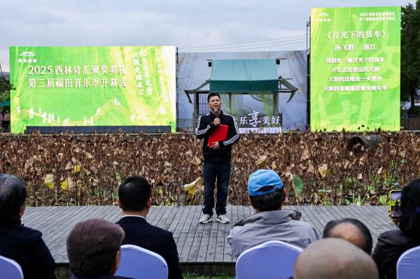 孙飞群在2025西林诗汇颁奖典礼暨第三届福田音乐季开幕式上,朗诵《月光下的货车》。