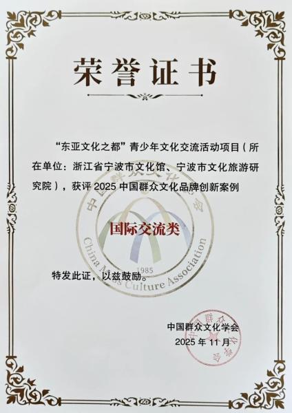 十年耕耘,十年收获。今天,记者从市文化馆获悉,宁波文化品牌活动——“东亚文化之都”青少年文化交流活动,在宁波当选“东亚文化之都”十周年之际,成功入选2025中国群众文化品牌创新案例,成为国际交流类典型案例。