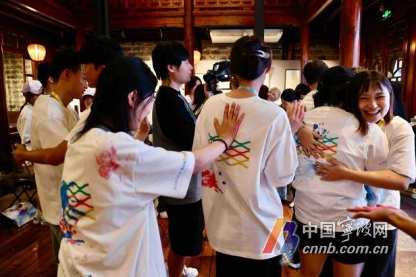 2024年,三国青少年在济州海滩收集植物、贝壳及废品,制作出独具特色的“蓝晒”作品;再聚甬城时,他们走进天一阁、宁波博物馆、雅戈尔5G工厂、东钱湖、韩岭老街等地,沉浸式领略宁波人文风光与发展活力,并以蓝晒、手账、漆画、涂鸦及综合材料等多种方式,联手创作九套“海丝繁花”主题原创服饰,将对文化的理解与热爱融入作品之中。