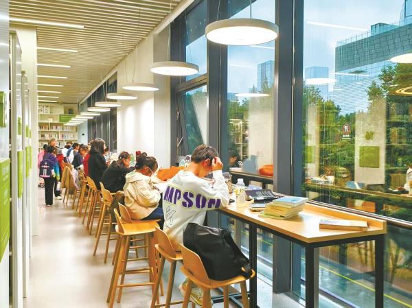 青少年借阅区几乎座无虚席。(周晓思/摄)