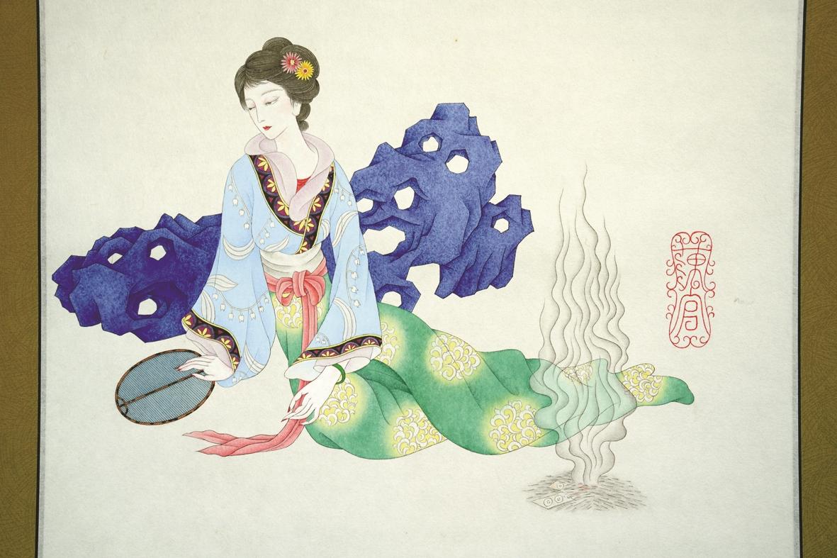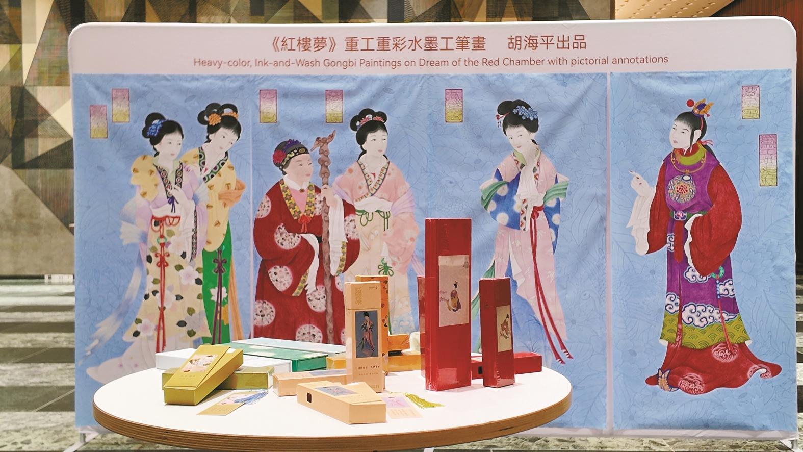 组画在日本的成功给了胡海平信心,“只有画是不够的。”他想围绕这些画再多做一些文章。目前他已成功注册“画红楼”商标,将推出一系列周边衍生产品,包括红酒、黄酒、团扇(缂丝、苏绣)、白茶、瓷器、线香、玉器、钗饰等。