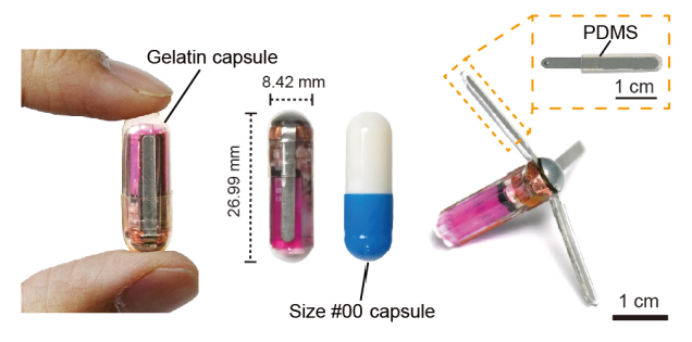 此外,团队还在探索内置传感器模式,让胶囊自主感知体内环境变化,并作出反应。“我们采用加速度传感器作为内置传感器,检测运动状态的,比如你正常走路、突然摔倒,运动方式是不一样的,这可以通过传感器监测到。”黄浩说。