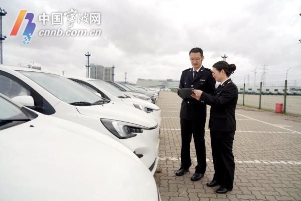 宁波海关关员对即将滚装出口的汽车进行现场监管。李巧柔/摄