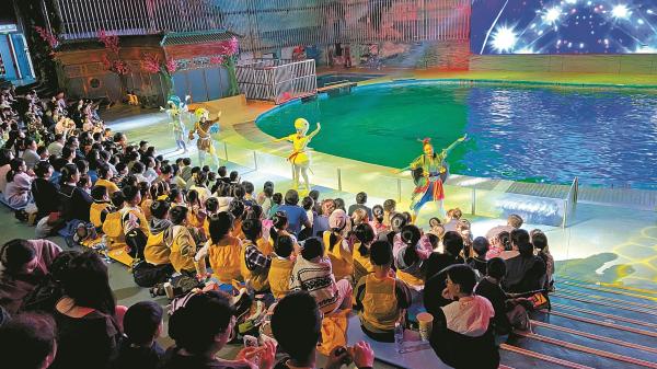 宁波迎来首个秋假,这几天各景区人气飙升,宁波海洋公园人气尤其火爆。秋假前三天,海洋公园累计客流量达5000人次,较去年同期增长8倍。图为孩子们在海洋公园观看海豚表演。(甬派客户端宁波日报 王博 叶斌 陆婧楠 文/摄)