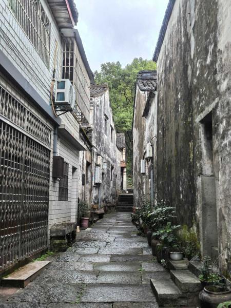 站在高处俯瞰,陶公山三村的屋顶密密匝匝地铺展眼前,灰瓦连绵,层层叠叠。陶公老街蜿蜒其间,将三村紧密串联。它自西南麓的建设村口起,向东北侧的利民村薛家湾而去。