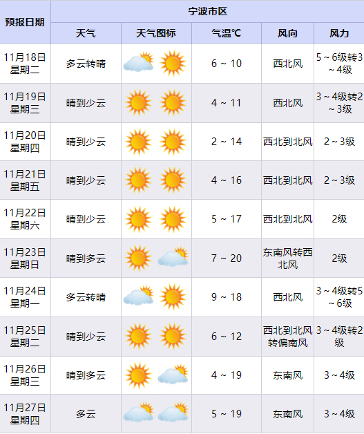 一直到周末之前,我市气温低迷。图源:宁波气象