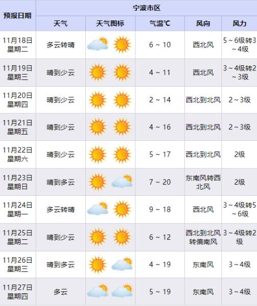 着眼当前天气形势,这股强冷空气已经开始影响我市。据市气象台最新预报,日平均气温过程降温幅度可达8℃~10℃。今明两天,沿海海面将有8~10级偏北大风,杭州湾、沿海地区和高海拔山区7~9级,内陆平原6~8级。今天阴有小雨,夜里转阴到多云。令人欣慰的是,明天起晴朗天气将重新回归,并将持续多日。