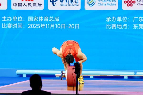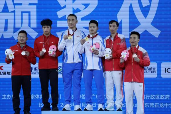 此时,排名第二的湖南选手彭政林两次挑战192公斤失败,石智勇凭借346公斤的总成绩锁定冠军。