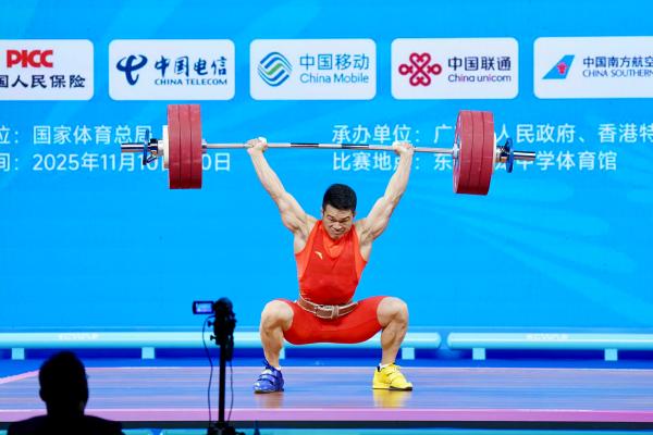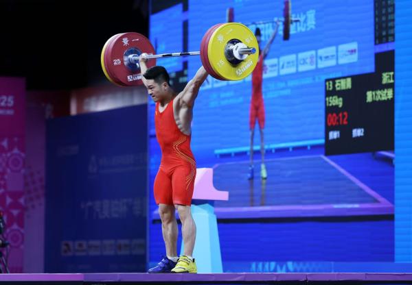 11月17日,东莞石龙中学体育馆,第十五届全国运动会举重项目男子73公斤级决赛战罢,宁波选手石智勇以抓举161公斤、挺举185公斤、总成绩346公斤的成绩夺得冠军,实现全运会三连冠。