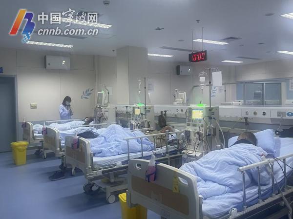 几位患者正在东钱湖镇中心卫生院血液净化中心进行血透治疗