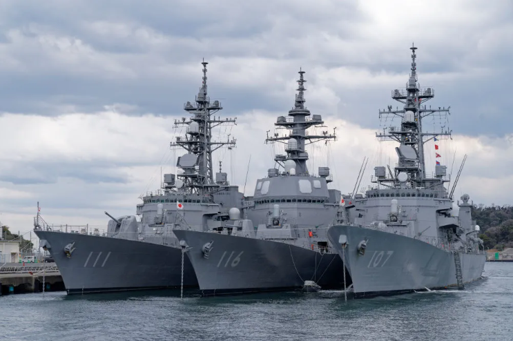 这是2024年3月20日在日本神奈川县横须贺市拍摄的停泊在横须贺基地的日本海上自卫队护卫舰。新华社记者 张笑宇 摄