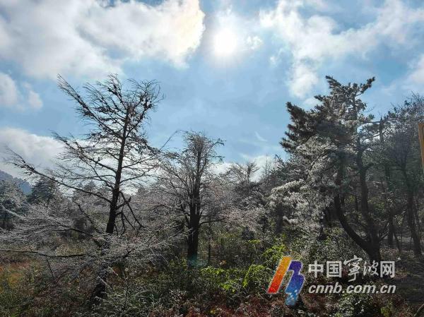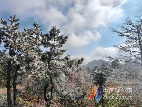 受冷空气影响,宁波四明山6944迎来今年立冬后首场雾凇景观。