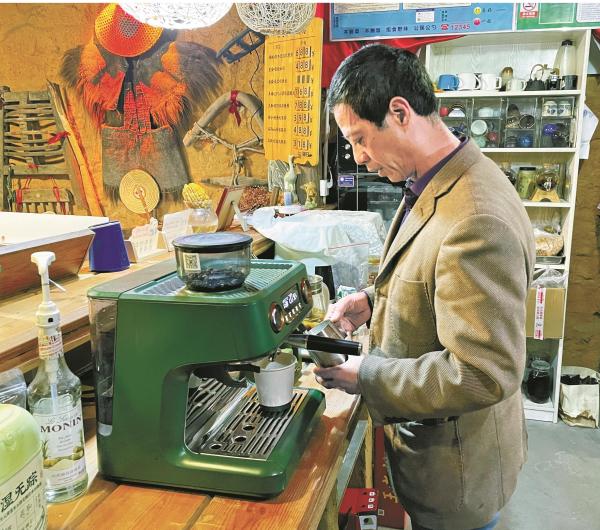 俞良在制作咖啡。(陈福良 顾佳诚 摄)