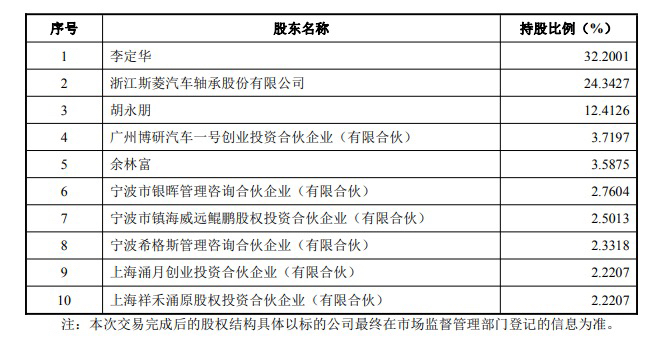交易完毕后,斯菱股份(持股24.3427%)将成为银球科技的第二大股东。原先的第一大股东胡永鹏在出让股权后,持股比例由34.7552%降至12.4126%,退居第三;原第二大股东李定华的持股比例由34.2001%降至32.2001%,处于第一大股东地位。