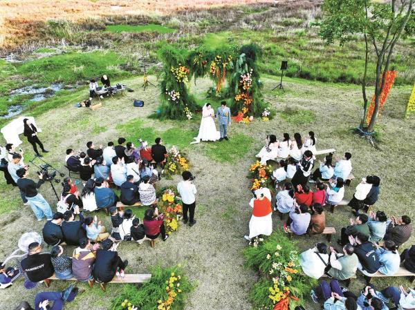 其实,选择在家乡草坪上办女儿的婚礼,秦红波也有自己的“私心”。“秦山村环境优美,我希望通过这场特别的婚礼,为村子‘打打广告’,让更多人看到这片美丽的草坪,以及这个美丽的乡村,也希望更多人拥抱自然,将真正的浪漫归于自然。”秦红波说。