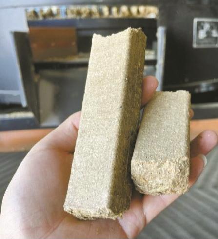 秸秆撕碎消毒压块作为生物质燃料。通讯员供图