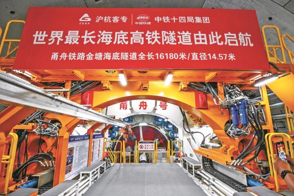 甬舟铁路金塘海底隧道盾构机向前掘进。 (王嘉彬 摄)