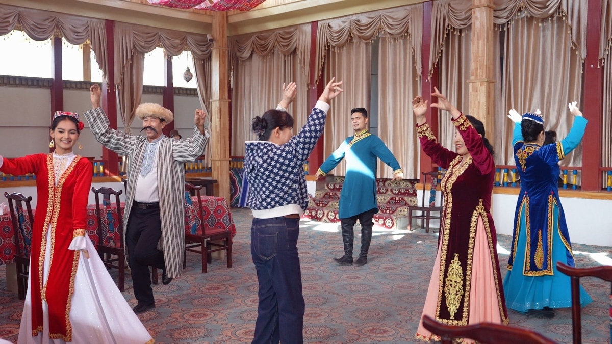 《库车赛乃木》刚柔并济,尾声时演员与游客围圈共舞,引得满室欢腾。