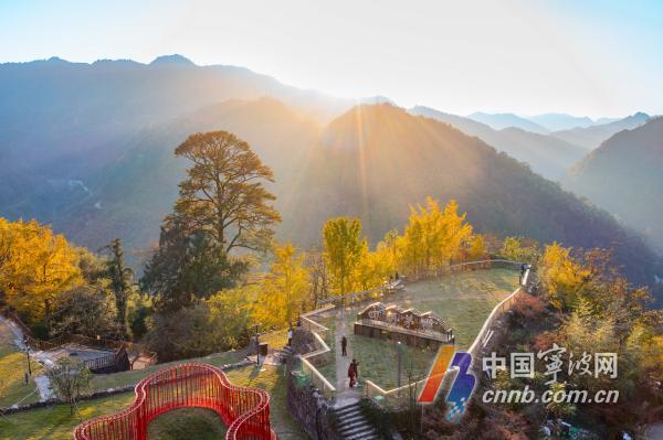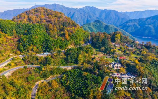 正值深秋,位于海曙区章水镇四明山深处的茅镬古树群公园迎来了一年中最绚烂的时节。层林尽染,枫红杏黄,与苍翠的古木交织成一幅斑斓的画卷。