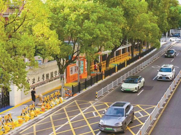“门口修建风雨连廊,栅栏换成防撞石,地面颜色应当把家长和学生区分开……”鄞州区市政设施保障中心工作人员张莺在钟公庙中心小学上学路改造提质工程现场指挥,作为“最美上学路”最早一批发起人,他凭借这些年打造上学路的经验,为钟公庙小学的“最美上学路”持续赋能,效果立竿见影——